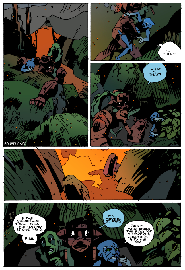 On this page, here we have a group of mudskippers trying to figure out what fire is.